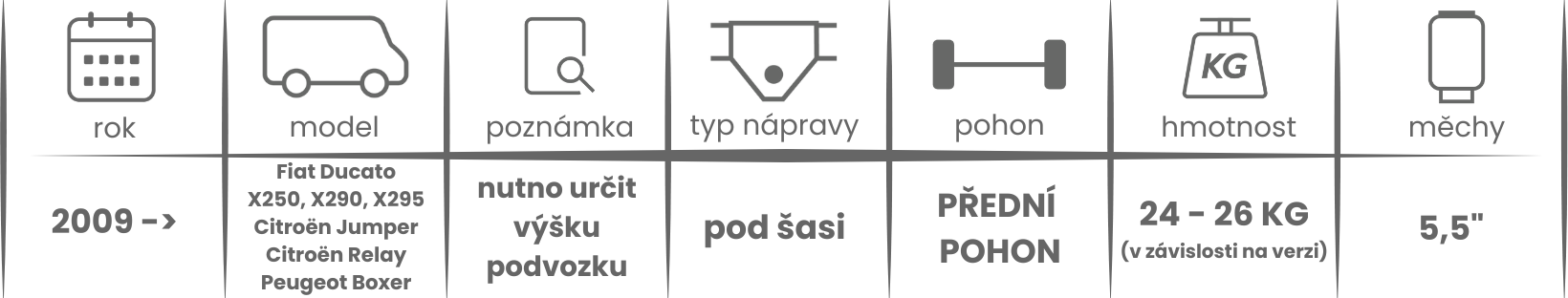 Vzduchové pérování AL-KO (2009-) snížená náprava pro Fiat Ducato, Citroen Jumper, Peugeot Boxer X250, X290, X295.