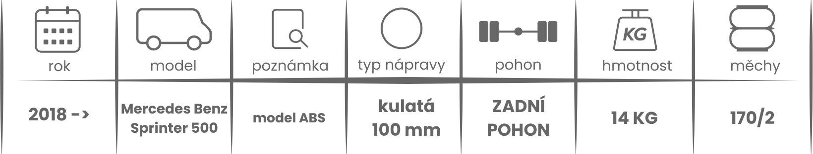 Přídavné měchy DUNLOP pro Mercedes Benz Sprinter 500 (2018-) WDB 907 jsou nabízeny v několika verzích a možnostech, pro tento typ vzduchového pérování jsou možné varianty níže (k vhodnému vybrání vzduchového pérování Dunlop pro Vaše vozidlo může posloužit také návod ZDE).