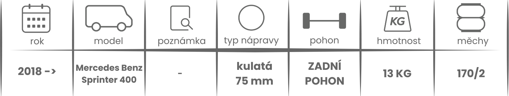 Přídavné měchy DUNLOP pro Mercedes Benz Sprinter 400 (2018-) WDB 907 jsou nabízeny v několika verzích a možnostech, pro tento typ vzduchového pérování jsou možné varianty níže (k vhodnému vybrání vzduchového pérování Dunlop pro Vaše vozidlo může posloužit také návod ZDE).