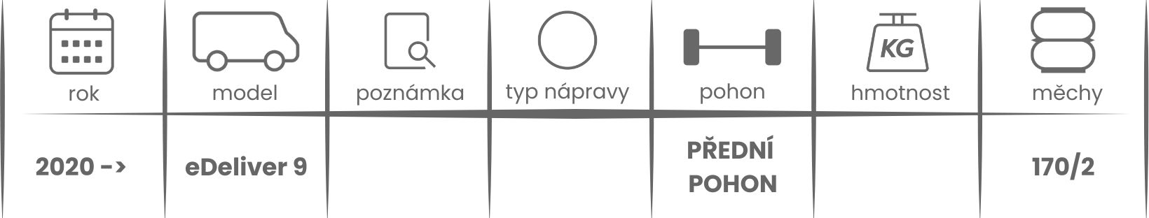 Přídavné měchy DUNLOP pro Maxus eDeliver 2020 a novější jsou nabízeny v několika verzích a možnostech, pro tento typ vzduchového pérování jsou možné varianty níže (k vhodnému vybrání vzduchového pérování Dunlop pro Vaše vozidlo může posloužit také návod ZDE).
